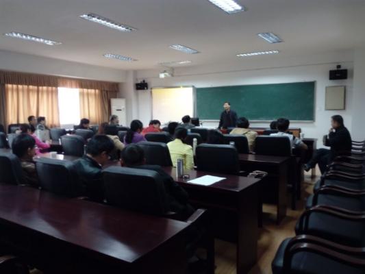 2016年4月5日14:00,湖南师范大学数学与计算机学院昌国良教授来我院进行专题讲学《谈专业硕士的培养》。数学学院院长孙明保教授,党总支书记甘向阳教授,数学学院全体老师以及我院硕士研究生出席了本次讲座。
