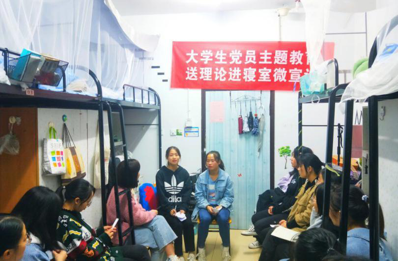 本站讯10月29日晚上7:30于16栋534寝室,体育学院603寝室深入数学学院学生党支部开展“不忘初心、牢记使命”主题教育微宣讲活动。此次活动以“中国梦、强国梦”为主题。数学学院党总支副书记易政群同志,学生支部书记何铁勇同志出席,15名学生党员参加。此次活动由体育学院何红英、王芳同志主讲。