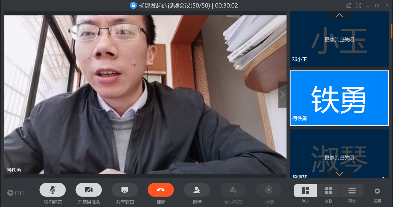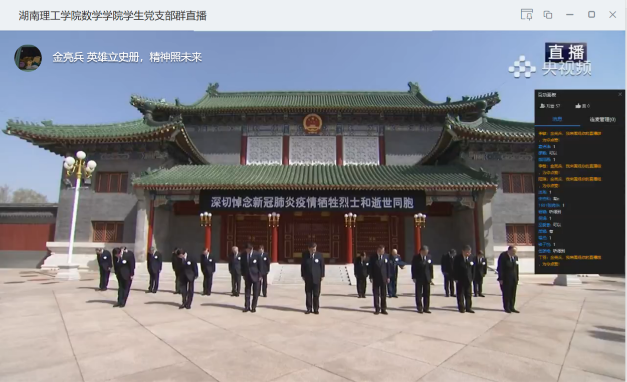 本站讯  4月14日下午1点,数学学院学生党支部成功开展“英雄立史册,精神照未来”主题党日活动。此次主题党日活动通过钉钉平台,采用线上直播和视频会议的方式开展。数学学院学生党支部书记何铁勇同志出席活动。学生党支部全体党员共49人参加。