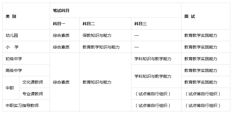 中小学教师资格考试包括笔试和面试两部分。笔试各科目采取纸笔考试。笔试各科成绩合格者,方可参加面试。