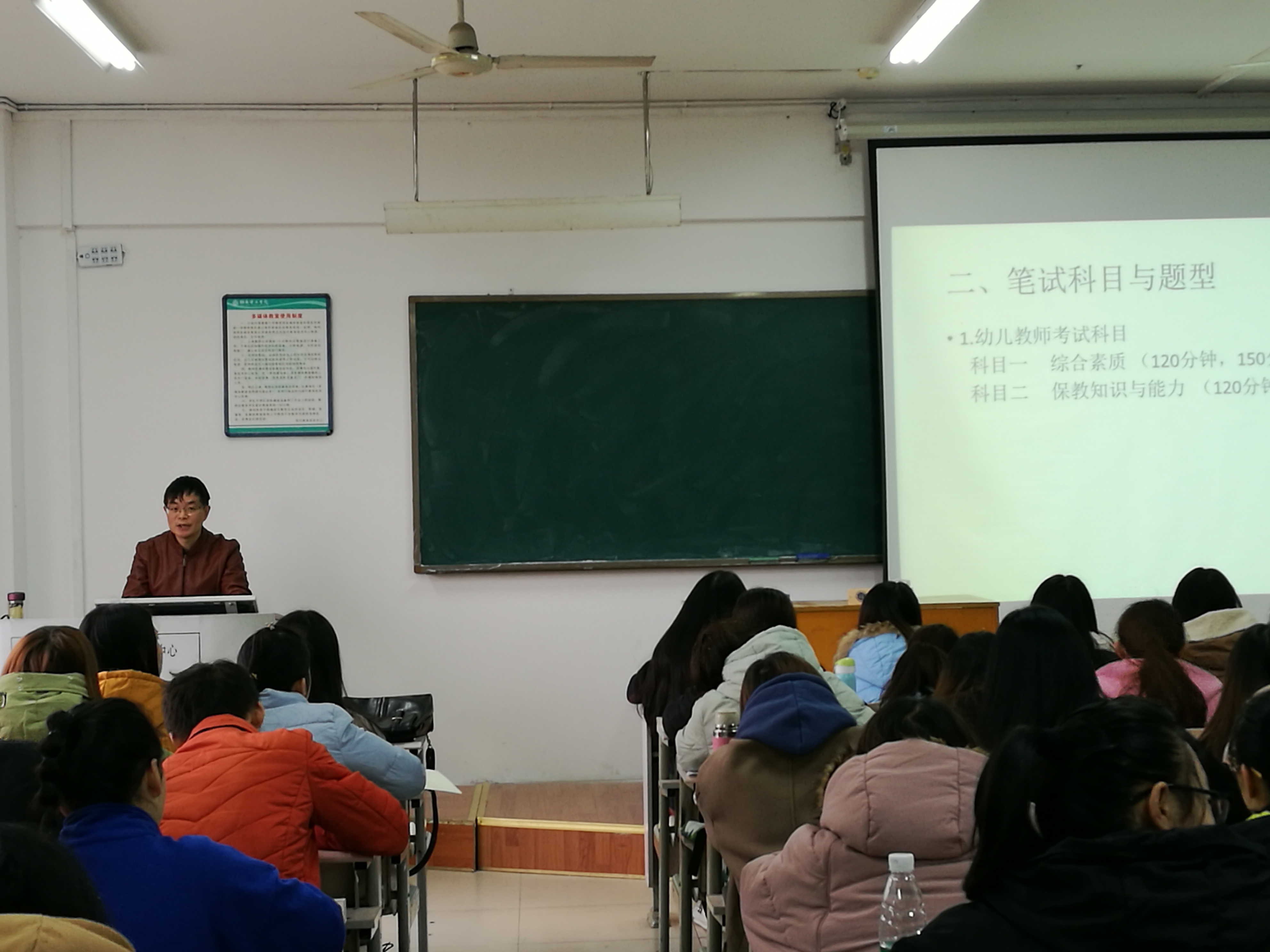 根据国家有关规定,2016年入学的师范生也要参加中小学教师资格考试,合格人员还需要向相应的教师资格认定机构(即教育局)申请认定教师资格,才能获得相应的教师资格。就这一问题我院针对数学与应用数学(教师教育)专业开展系列专业教育讲座,今天,涂建斌老师就有关教师资格证认定考试做了专题报告,具体介绍以下几个方面: