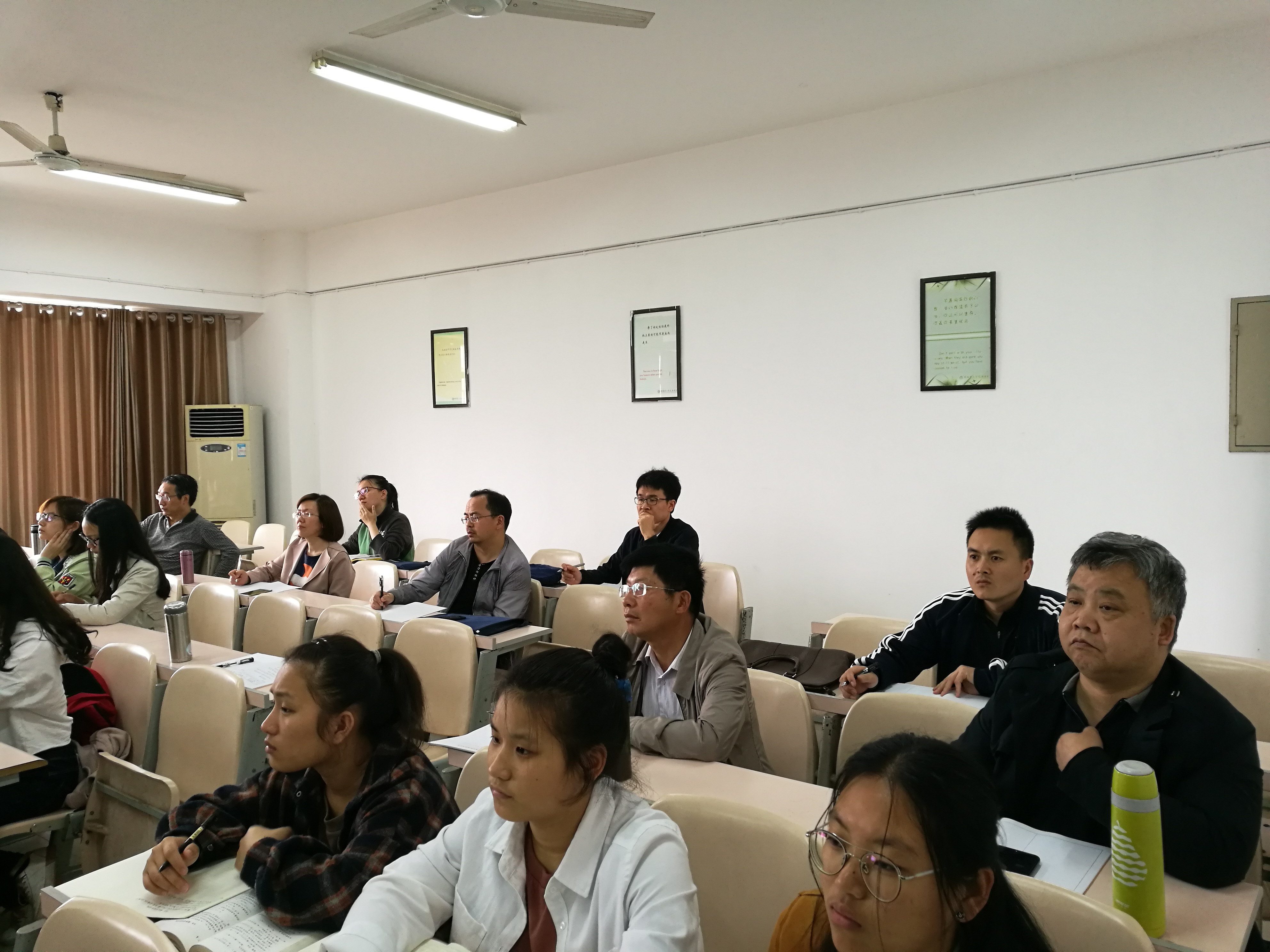 本学期近两年新进两位博士罗德仁、周潘岳老师承担了高等代数课程,学院督导组与高等数学教研室联合开展系列教研活动,4月26日高等数学教研室组织安排了两位博士的高等代数公开课,本院督导组成员与部分教师参与了听课活动,课后针对两位博士本堂课教学进行了沟通交流。