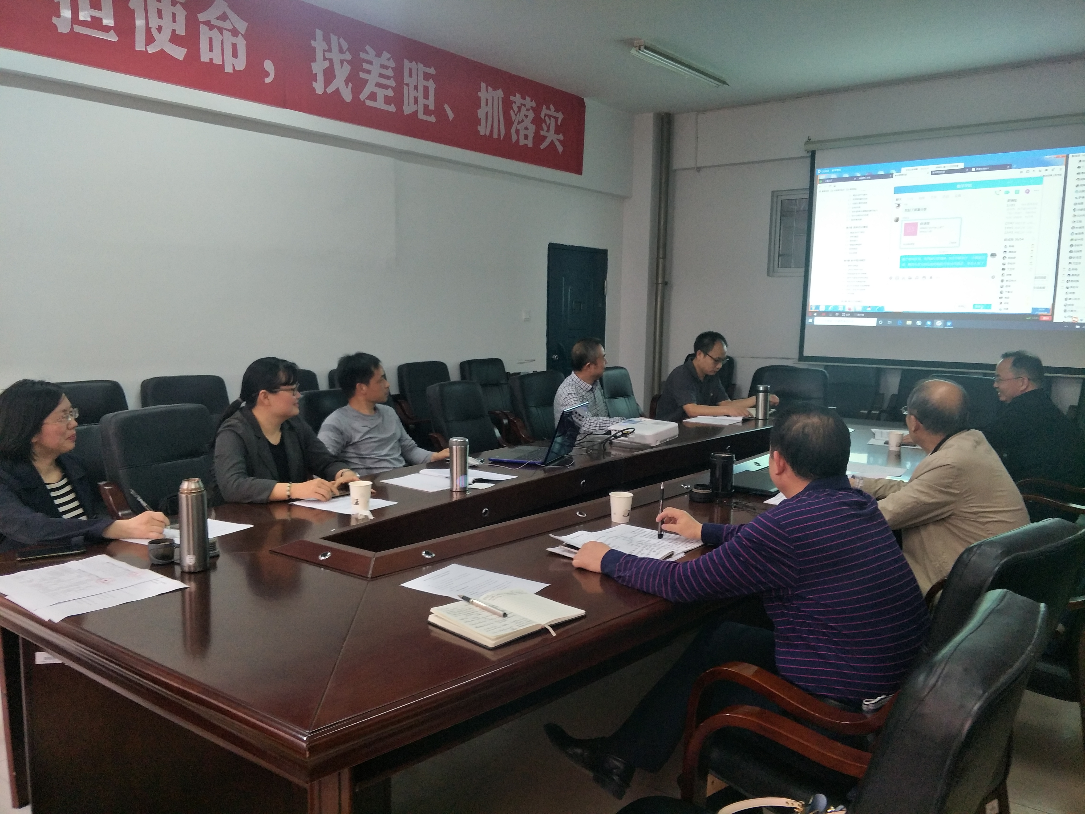 数学实验室何帆主任就如何开展线上实验课程教学介绍了成功案例,结合自己数学模型课程思政项目与线上教学提出的设想与正在研究的问题,线上与数学建模团队进行了交流研讨。
