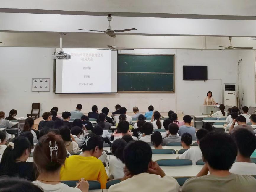 本站讯 6月10日晚,数学学院于9T1成功开展数学与应用数学专业教育见习动员大会。此次动员会由数学学院副院长黎丽梅主讲,见习指导老师丁卫平、罗德仁、吴明渊、禹辉煌,辅导员徐笑天出席,2021级数学与应用数学专业全体学生与会。