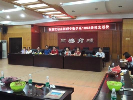 2016年7月30日下午3点,数学学院1993级校友于北院行政楼214会议室举行毕业20周年纪念会议。校友联络办公室领导周畅,数学学院党总支书记阳鲁平,数学学院副院长周立仁,数学学院副院长丁卫平,1993级原任教师和1993级近60位校友参会。原1993级毕业生,现任数学学院教师江五元博士主持会议。