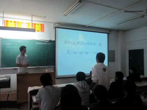 担任此次竞赛的评委皆是前期教育实习课中精心选拔、评课能力很强的我院学生,6位参赛选手也是该年级讲课中的佼佼者。一支粉笔在手,满满信心在胸,每位选手准备充分,表达流利,结合自己制作的PPT,将大家带入深奥而富有乐趣的数学世界。虽然每个人都只有短短半小时左右的教学时间,但他们出色的表现还是赢得了评委很高的评价和观众热烈的掌声,同时,评委也中肯地指出了选手们的不足之处。