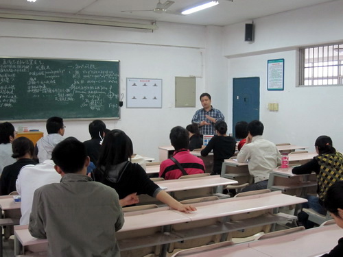 为了让在读师范专业学生更好地展示自己在教学方面的才华,了解自己在教学上的不足,进一步增强其实践应用能力和创新能力,5月21日上午,数学学院在数计楼5309、5403教室成功举办07级师范专业讲课技能竞赛。我院党总支书记甘向阳及全体07级师范教育专业学生观看了比赛。