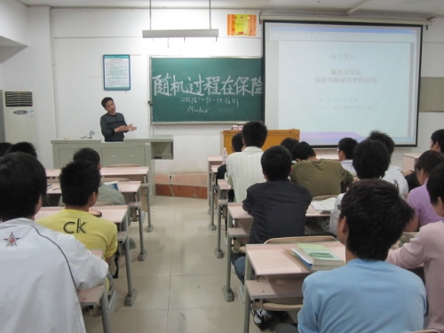 会上,江五元博士作了以“随机过程在保险研究中的应用”为主题的学术报告,为同学们讲述了与我们生活息息相关的保险方面知识,并告诉大家应当如何处理好“身边的保险”。最后,他还说:“机遇是随机的,一旦得到,我们就要好好把握,同时也不要忘了成功一直都只青睐勤奋的人。”使在座的各位都陷入了沉思,在几秒的沉默后爆发出雷鸣般的掌声。 (通讯员/帅庆 熊晓阳)