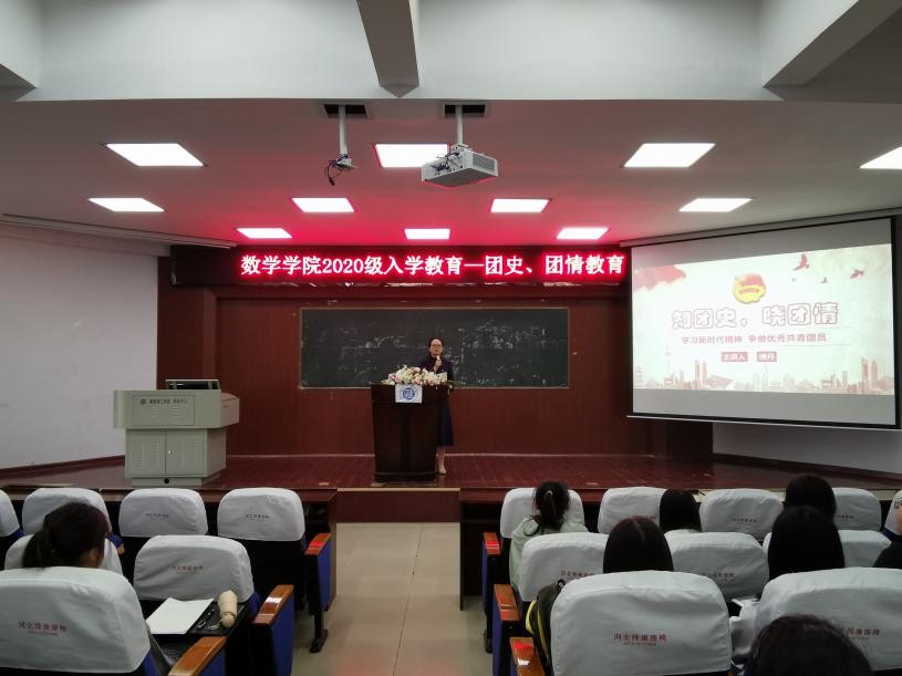 本站讯 9月27日上午10点,数学学院在六栋学术报告厅开展了以“知团史,晓团情”为主题的入学教育活动。数学学院团总支书记傅丹主讲,20级辅导员徐笑天、20级本科生、研究生参加。