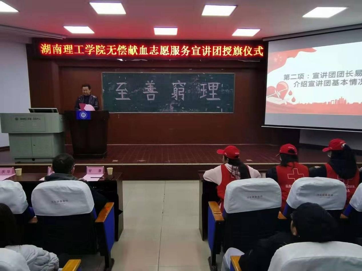 本站讯 12月5日上午,太阳成集团tyc151cc无偿献血志愿服务宣讲团授旗仪式在南院6号教学楼学术报告厅隆重举行。党委委员、宣传部部长王庆华,宣传部副部长司念伟,太阳成集团tyc151cc副书记易政群,献血管理科一科科长廖亚以及献血管理科一科副科长甘泉出席仪式。