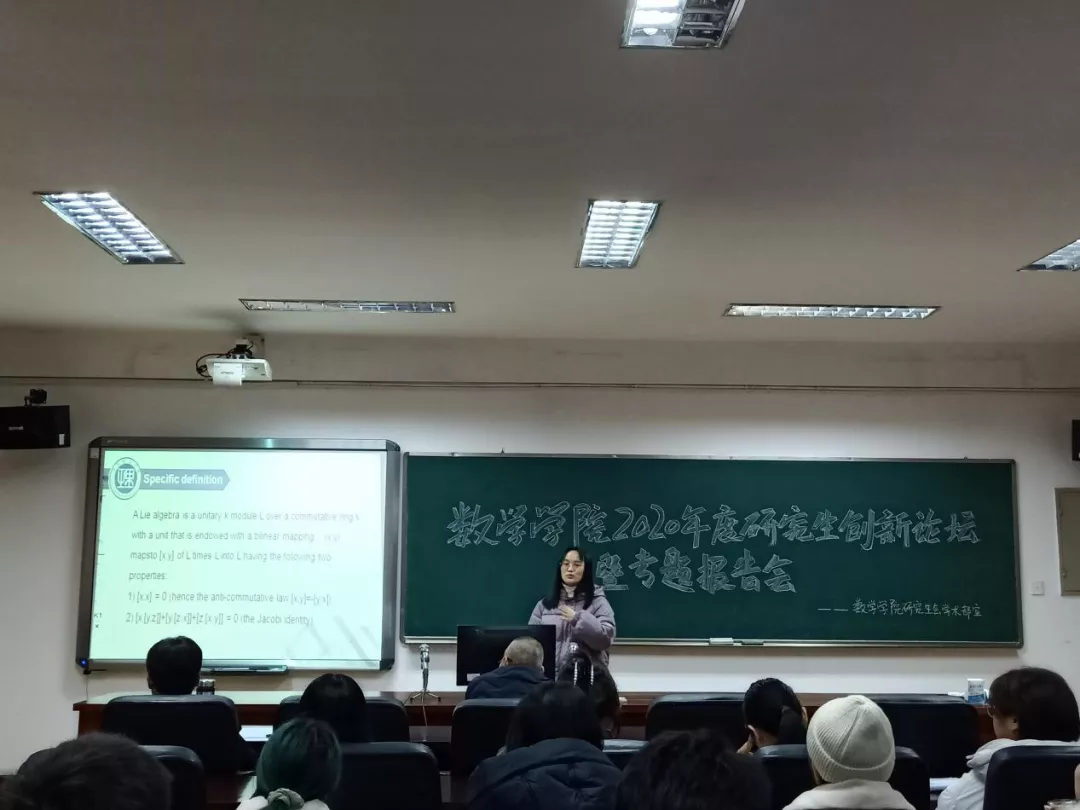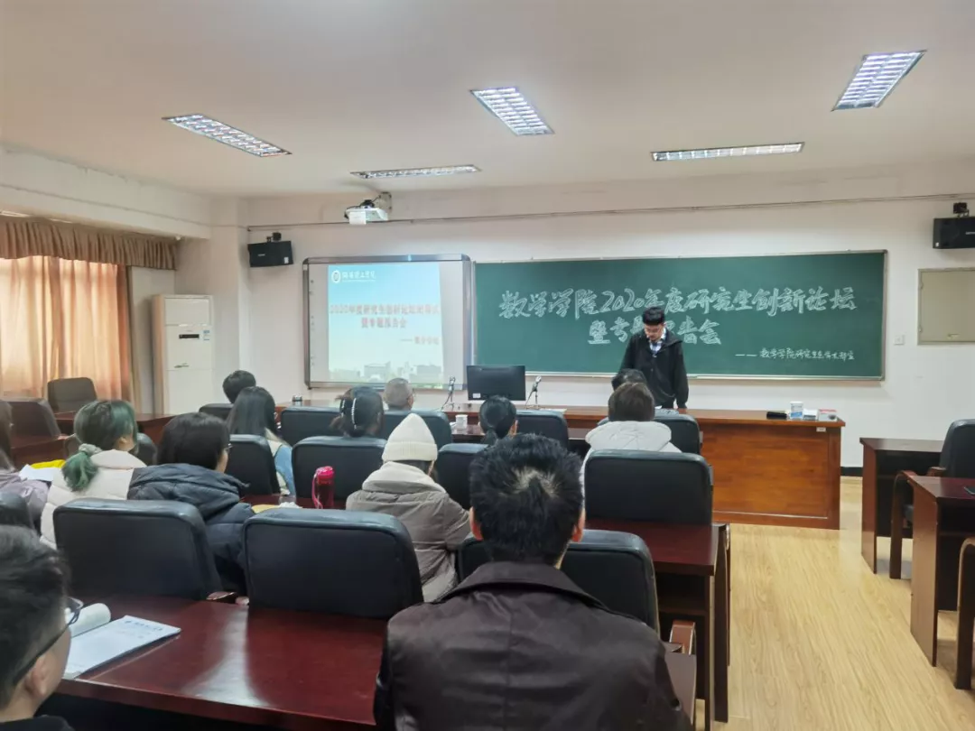 会议第一项,由研究生学术部部长张琰同学汇报数学学院本届研究生创新论坛活动开展情况及专题报告流程。第二项,由研究生解陈蓓、李笛、王建雨分别就自己的研究方向以及其应用领域做专题报告。
