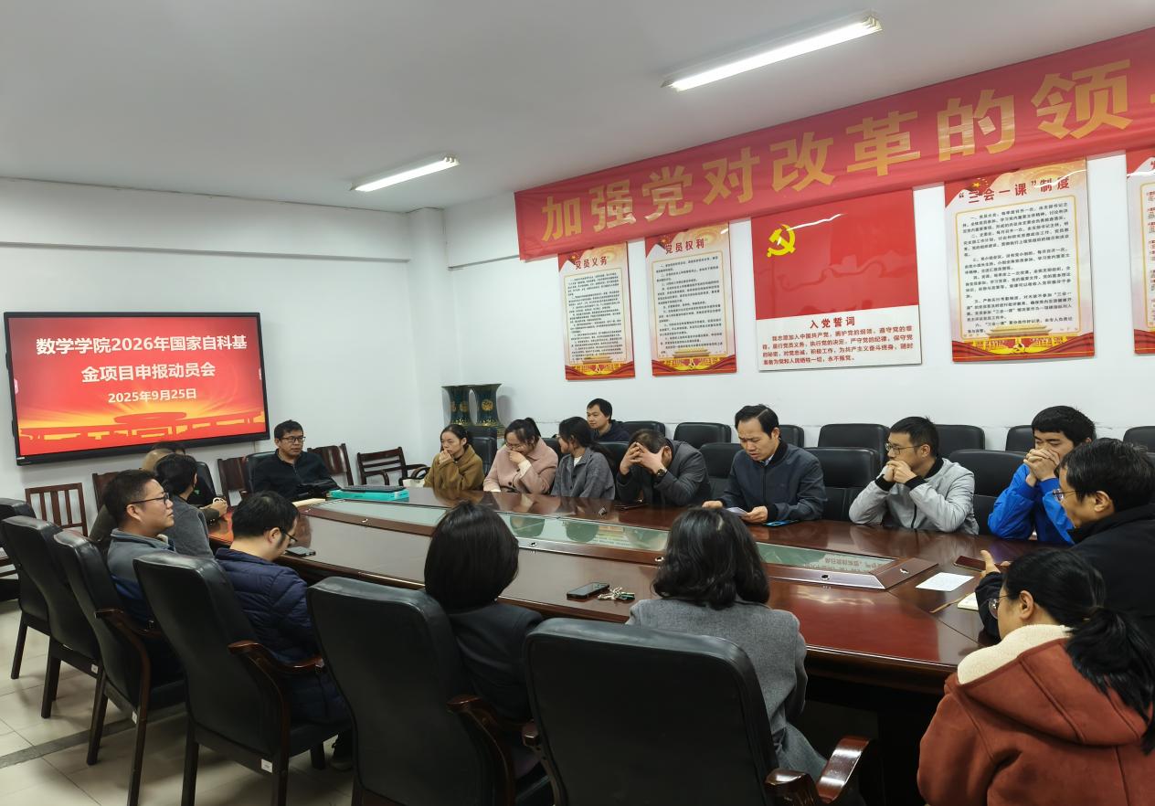 会上,周小强院长总结了在2025年国家自科基金申报中存在的不足,明确了2026年国家自科基金申报的关键时间节点与工作任务。要求所有人员务必要高度重视,能报尽报。对去年申报过的老师,要结合专家的评审意见,与团队成员深入研讨、认真修改;对新进的博士,要结合博士期间的科研工作,尽快选好题。要求教师在10月30日前完成项目书初稿,学院已成立了科研项目申报工作小组,随后将组织校内外专家开展多轮提质认证工作。具体工作安排,见《数学学院2026年度国家自科基金项目申报的工作方案》。