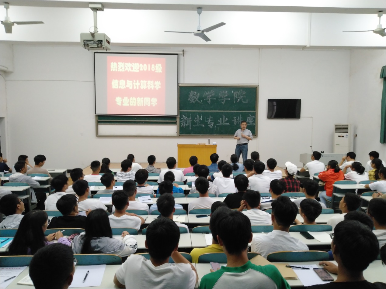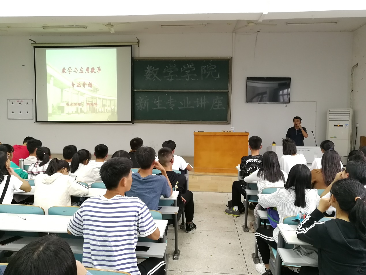 9月25日下午,数学学院于9T1、9T2教室召开新生入学专业讲座。数学学院2018级全体新生参加此次讲座,副院长丁卫平、李松华教授担任此次讲座的主讲人。