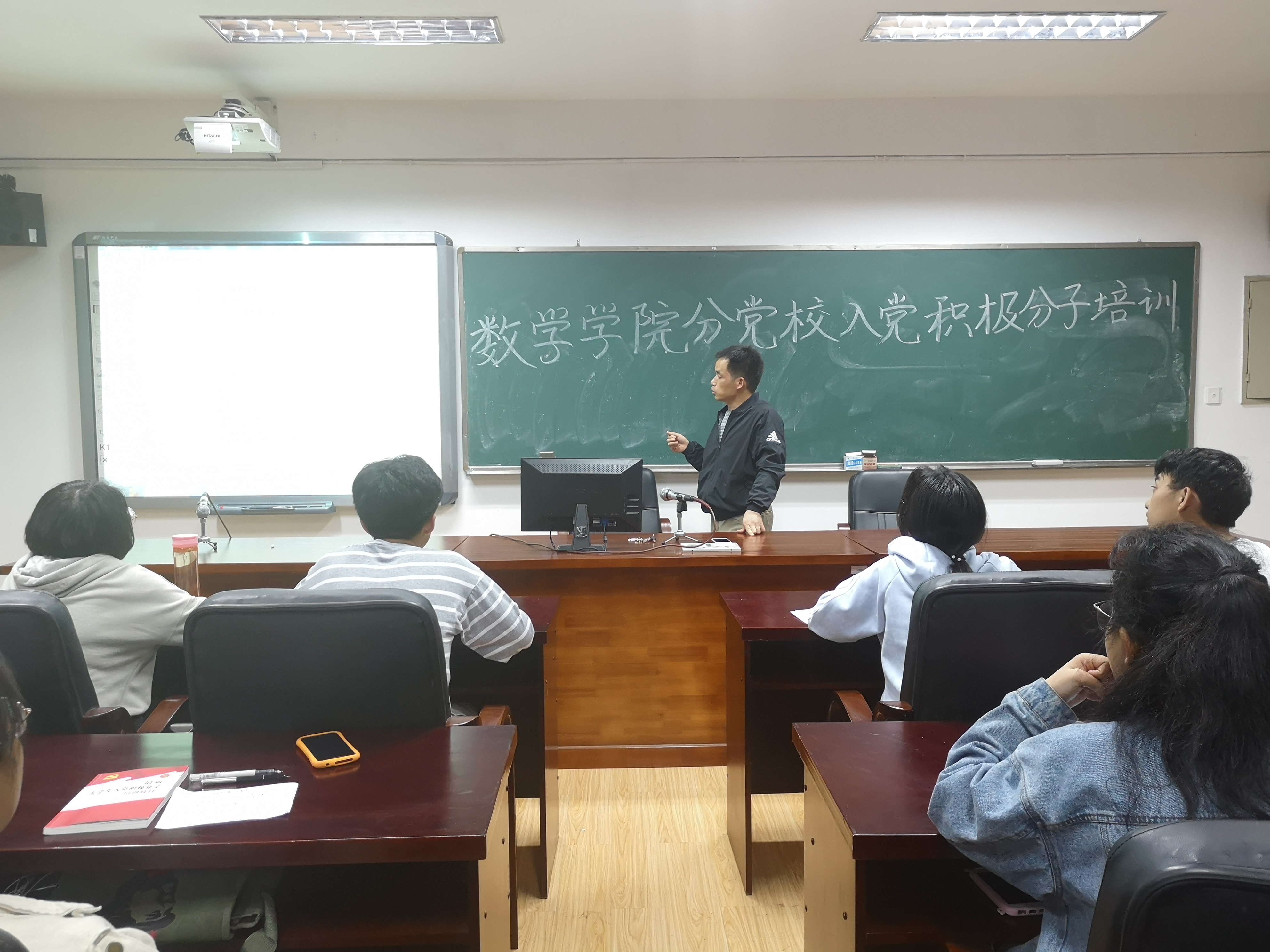 本站讯4月23日晚7点,数学学院于5511教室进行以“社会主义核心价值观解读”为主题的入党积极分子培训,主讲人为江五元老师,我院全体入党积极分子参加。