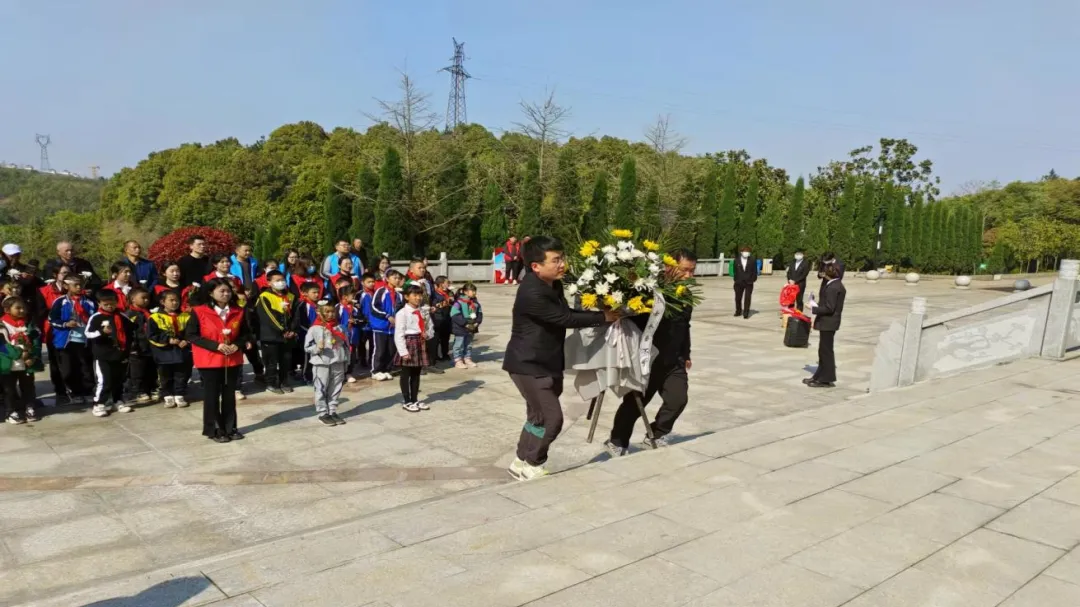 本站讯 为缅怀英雄先烈,传承红色精神,4月1日上午9:00,数学学院联合南湖新区畔湖湾社区开展“赓续英烈精神,传承红色血脉,系好人生第一粒扣子”共青团携手红领巾清明节祭英烈活动。南湖新区畔湖湾社区党支部书记朱光明、太阳成集团tyc151cc数学学院团委书记徐笑天出席,太阳成集团tyc151cc“数”起心中的信仰——彩虹义务支教团队团员代表、数学学院全体师生党员、畔湖湾社区优秀少先队员代表参加活动。