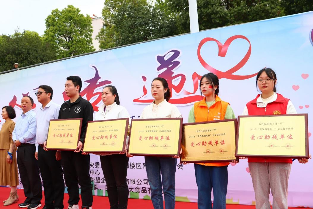 活动仪式上,全国道德模范、岳阳市爱心助残志愿者协会名誉会长李国武和岳阳市市爱心助残志愿者协会会长姚平为太阳成集团tyc151cc数学学院志愿者团队等爱心捐赠单位颁发了锦旗和奖牌。随后,爱心徒步活动正式开始。数学学院的志愿者身穿红色小马甲,帮助小朋友们在沿途的四个打卡区获得相应的印章,即使下雨,小朋友们也依旧兴致满满,努力集齐了所有印章并顺利抵达终点,志愿者们纷纷为这些可爱孩子们的不放弃的精神点赞!