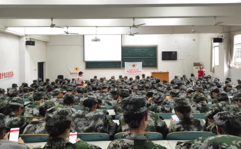 本站讯 4月18日下午,数学学院联合岳阳市红十字会应急救护志愿者协会,于9T2教室开展战场医疗救护训练讲座。讲座由岳阳市红十字会志愿者主讲,数学学院2022级全体学生参加。