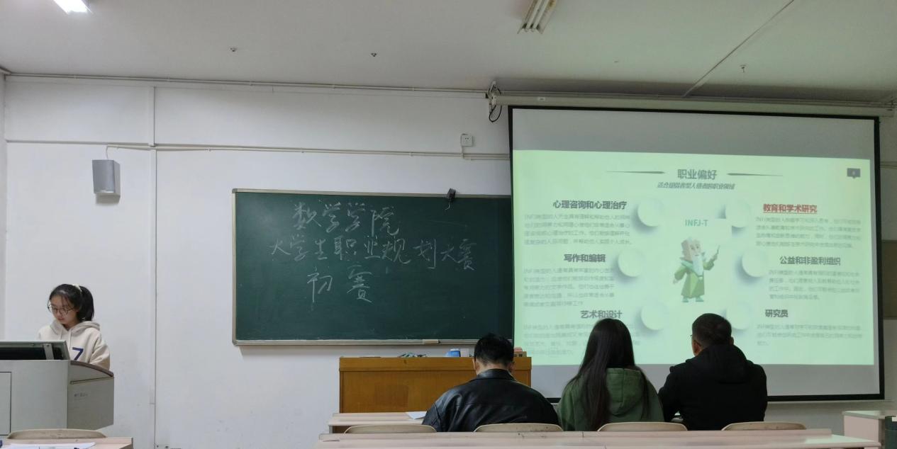 12月4日晚,数学学院于5311、5312顺利开展首届大学生职业规划大赛初赛,本次比赛由数学学院辅导员徐笑天、佘宁远以及部分研究生担任评委。