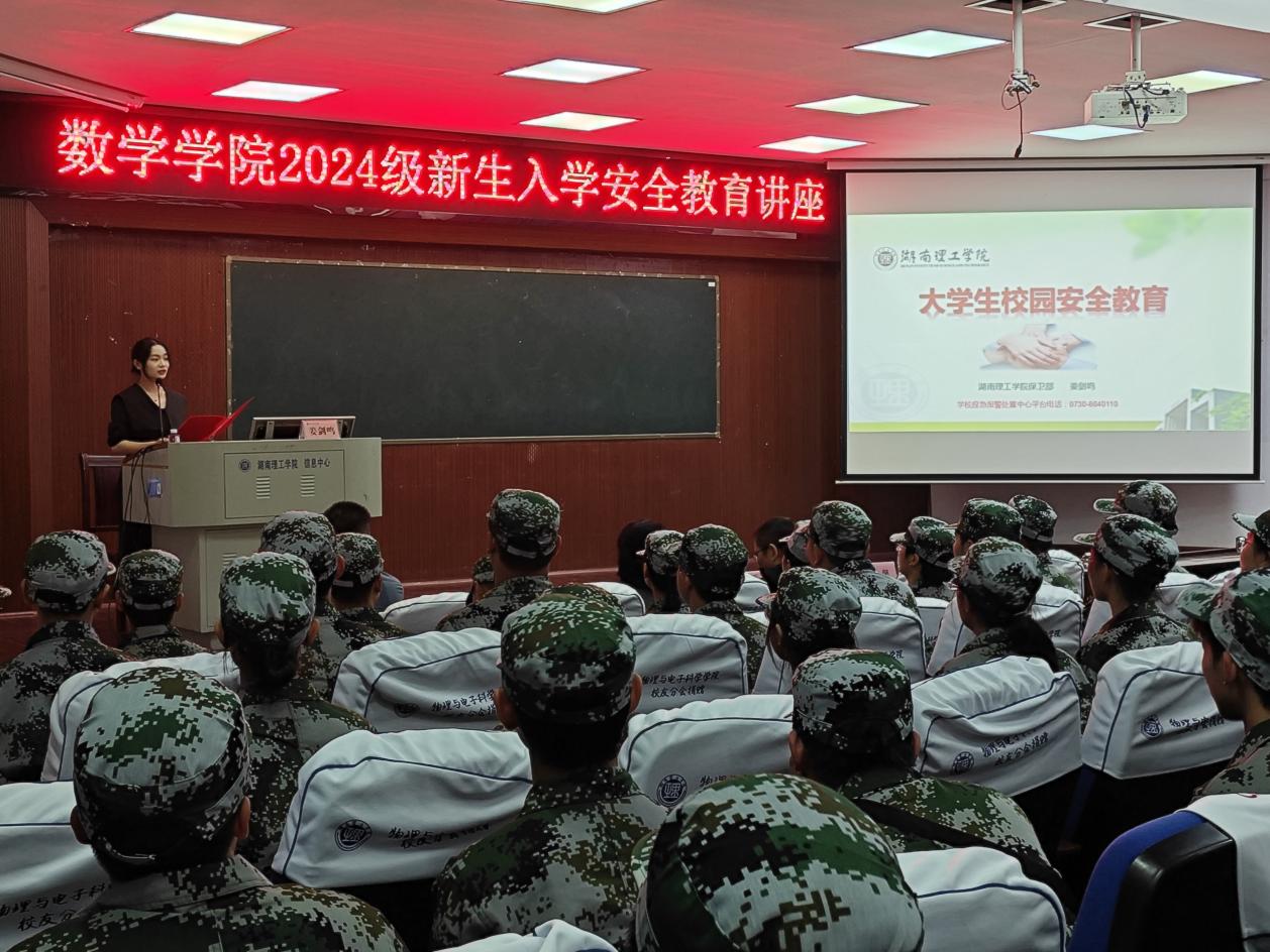 为深入践行学校安全管理理念,进一步强化新生的安全意识,10月8日晚,数学学院于6栋学术报告厅顺利举办入学安全教育讲座。讲座由太阳成集团tyc151cc党委保卫部部长姜剑鸣主讲,太阳成集团tyc151cc副书记齐亮菲、辅导员佘宁远、赵馨出席讲座,2024级全体学生与会。