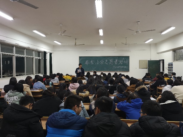 志愿者陆续来到会场,干部们维持着现场秩序,罗德仁老师伴随着掌声走上讲台。介绍过后,罗德仁老师先后讲述熟悉教材、叙述教材、收集问题和解决问题的方法,随后以亲身经历和体会为大家阐述了留守儿童及自闭症儿童的性格特征,并为志愿者分享自身的总结成果。罗德仁老师讲解过程中,志愿者积极回应老师,数名志愿者反映罗德仁老师讲课十分精彩,并表明罗德仁老师传授的教学方式井井有条,简单又突出,让志愿者收获甚多。