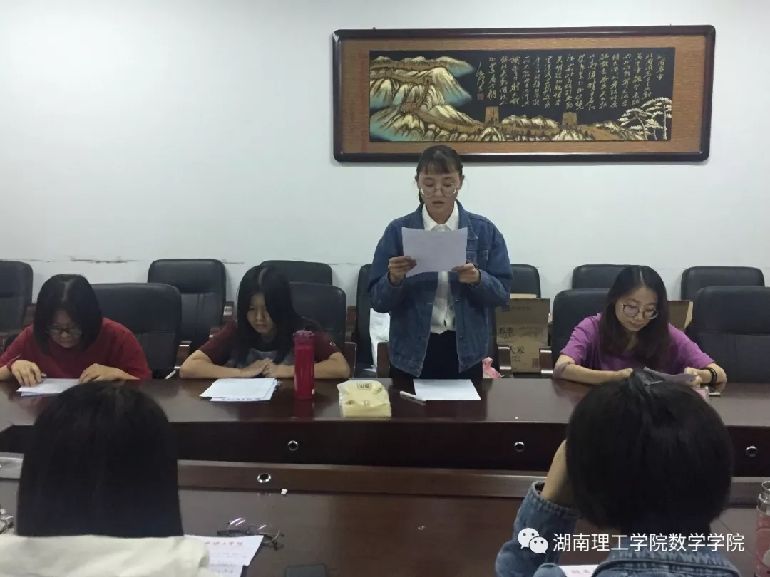会议开始由党支部委员方一阳作介绍本次会议的议程,共分为四项议程。首先,推选新的委员,经上一届支部委员会研讨、党总支审定,决定推荐杨娜为新一届支部委员,在场党员无异议,全票当选。其次,由党支部委员方一阳汇报近期第二支部学生党员的近期工作内容。