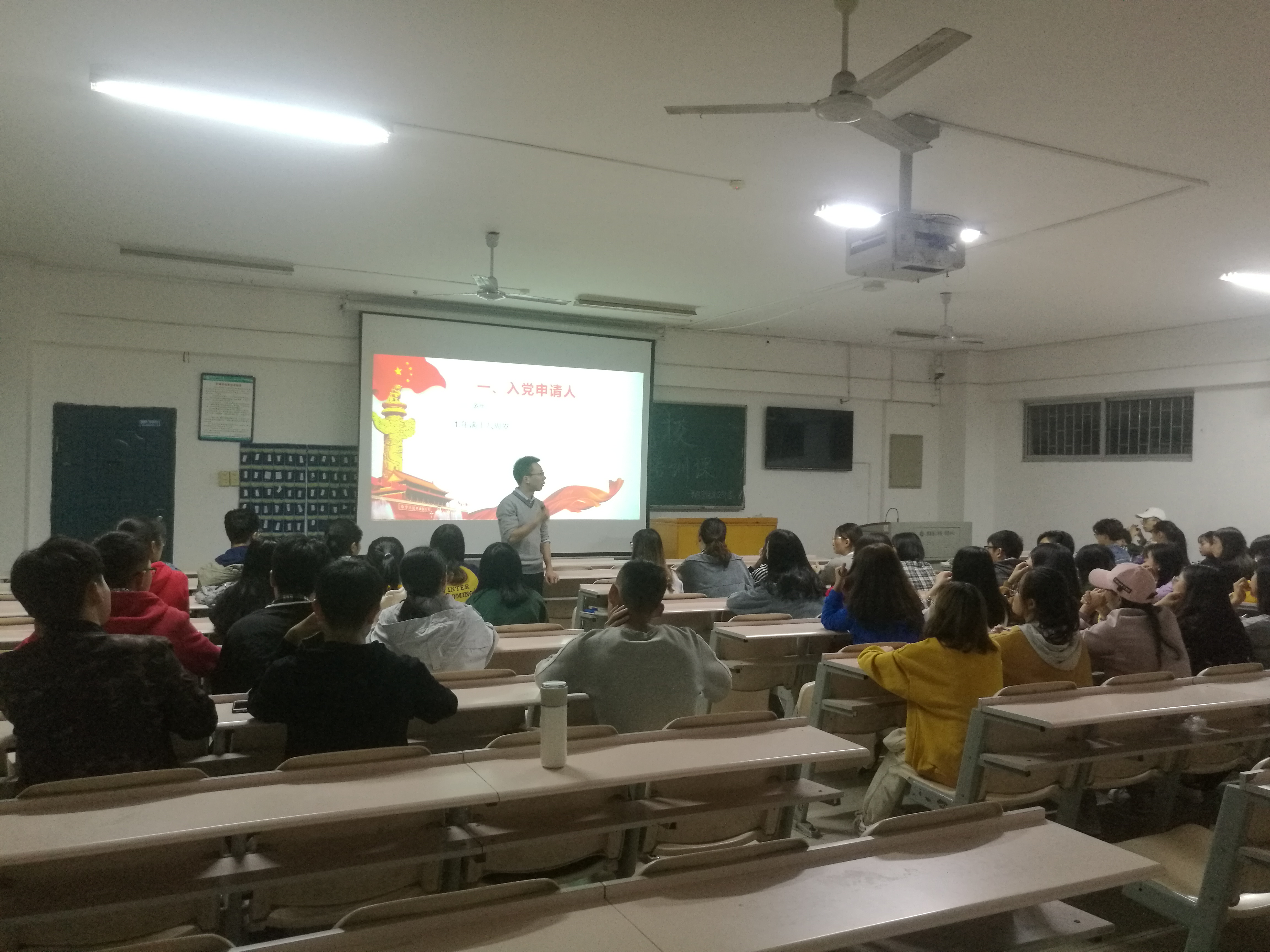 本站训2018年11月4日19时,在5栋教学楼5408开展数学学院党校第39期入党积极分子培训课,由数学学院学生第二支部支部书记何铁勇主讲,参加人员有第39入党积极分子全体成员以及16级全体预备党员。