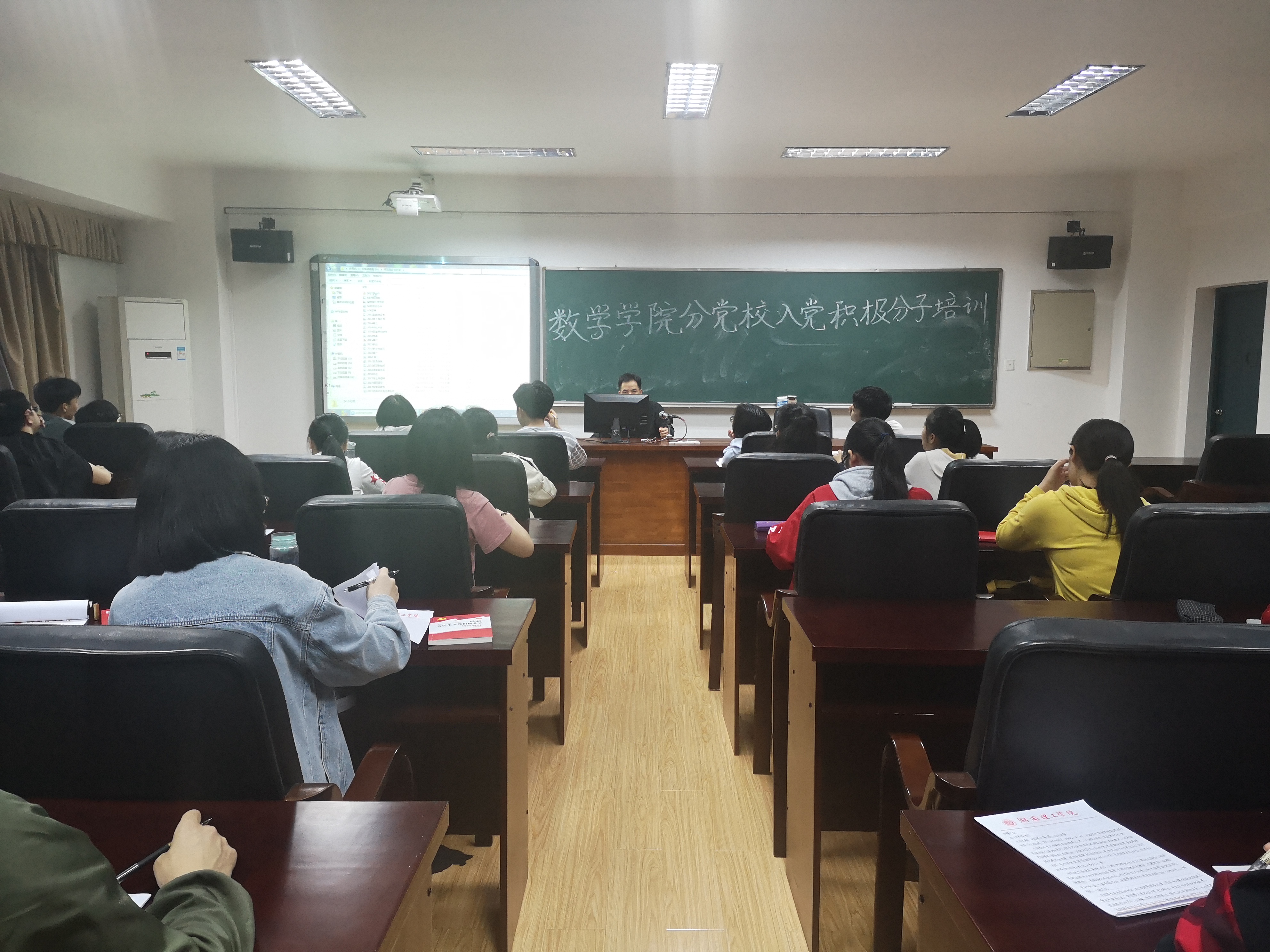 本站讯4月23日晚7点,数学学院于5511教室进行以“社会主义核心价值观解读”为主题的入党积极分子培训,主讲人为江五元老师,我院全体入党积极分子参加。