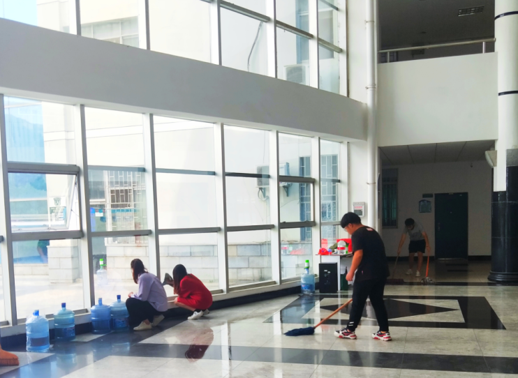 活动开始前,党支部将参与人员分为6组,并设立小组长。各组成员在组长的带领下,根据工作任务细致具体地开展活动。每组组员自备清理工具对教学楼内的各类宣传栏、教室课桌椅、楼道等进行清理打扫。组员之间分工明确、高效合作。活动结束后党员和积极分子统一集合拍照,并相互交流此次活动的心得。