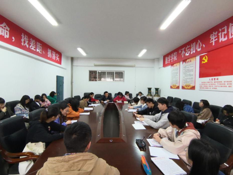 本站讯 11月15日14:30于5306A会议室,数学学院学生党支部召开讨论预备党员转正支部大会。学生党支部书记何铁勇同志出席,全体学生党员参加。本次会议由学生党支部副书记杨娜同志主持。