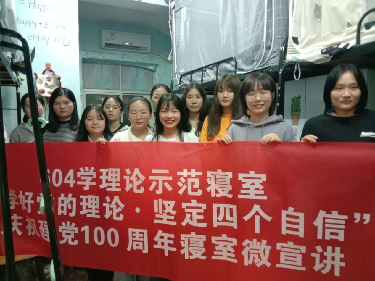 本站讯 5月20日19:00于数学学院16栋209寝室开展以“学好党的理论,坚定四个自信”为主题的庆祝建党100周年微宣讲活动,本次活动由体育学院6栋614寝室成员和全体毕业生女党员参加。
