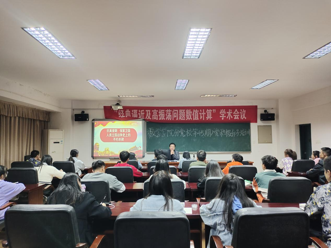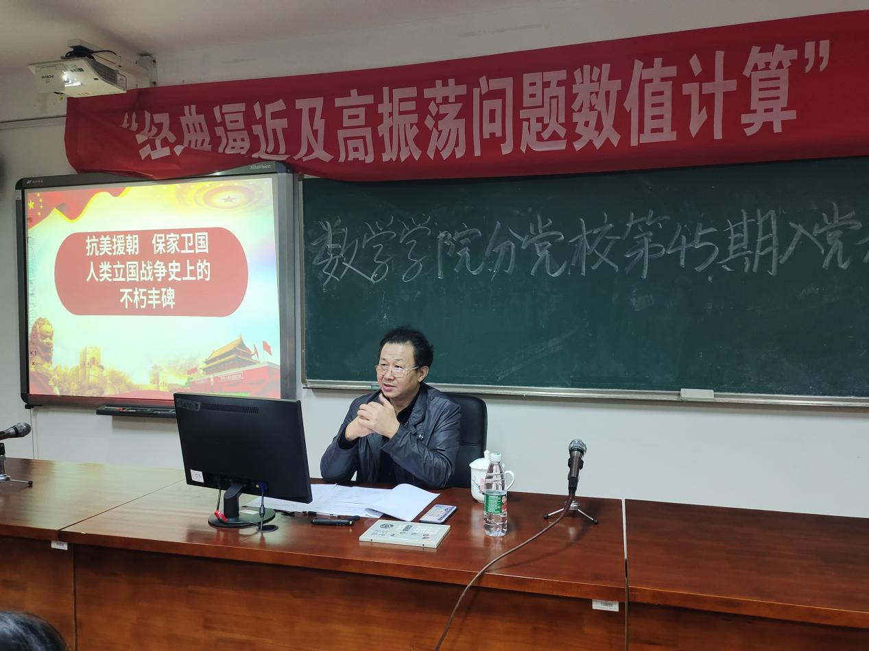 本站讯 2021年10月25日19:00于5511教室,数学学院组织员易政群以“抗美援朝 保家卫国”为主题开展党课。第45期全体入党积极分子参与培训。