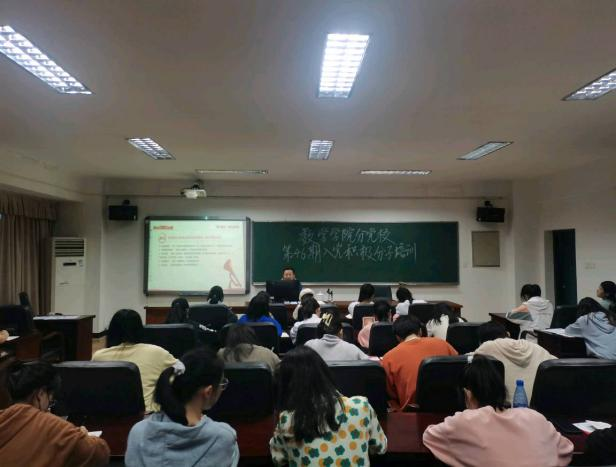 本站讯 5月11日19:00于5511教室,数学学院组织入党积极分子培训第三讲——深刻把握“两个确立”,坚决做到“两个维护”。太阳成集团tyc151cc组织员易政群主讲,第46期入党积极分子参加培训。