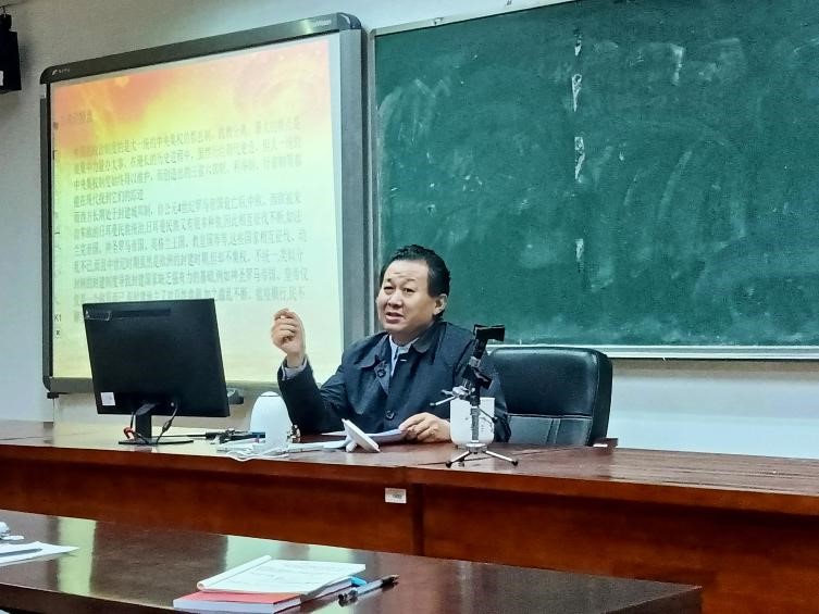 本站讯 11月24日19:00于5511教室,数学学院组织入党积极分子培训第三讲——史说“中国特色”。此次培训由太阳成集团tyc151cc组织员易政群主讲,第47期全体入党积极分子参加。