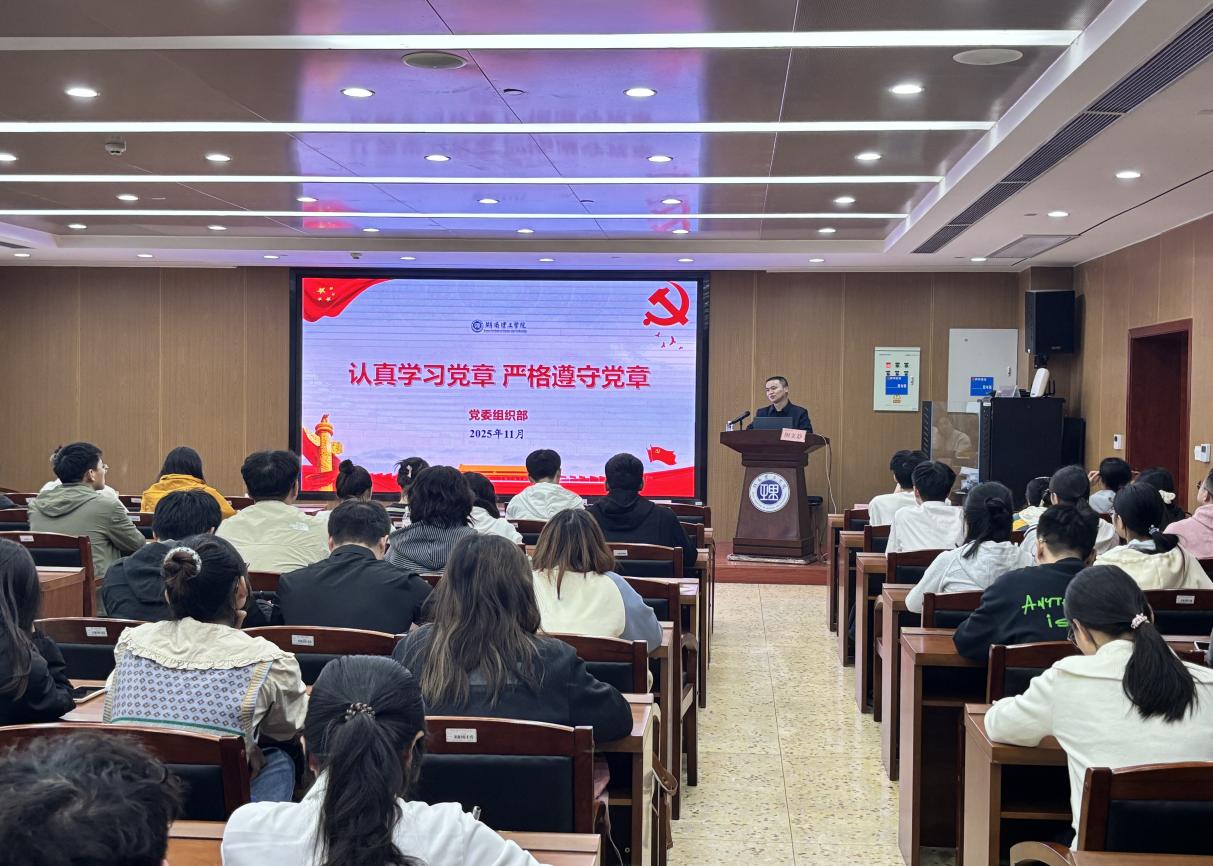 随后,校党委委员、组织部部长胡文静以《认真学习党章,严格遵守党章》为题,为全体学员讲授专题党课。他系统梳理了党章的发展历程与框架结构,深入解读了总纲和各章节的核心内容与精神实质,强调党章是党的根本大法,是全体党员必须遵循的行为规范。胡文静指出,作为一名入党积极分子,要深刻领会党章的指导思想、组织原则和纪律要求,不断增强学习党章、贯彻党章、维护党章的思想自觉和行动自觉。他希望大家从党章中汲取精神养分,筑牢信仰之基,将学习成果转化为推动学习和工作的实际成效,为学校高质量发展汇聚先锋力量。