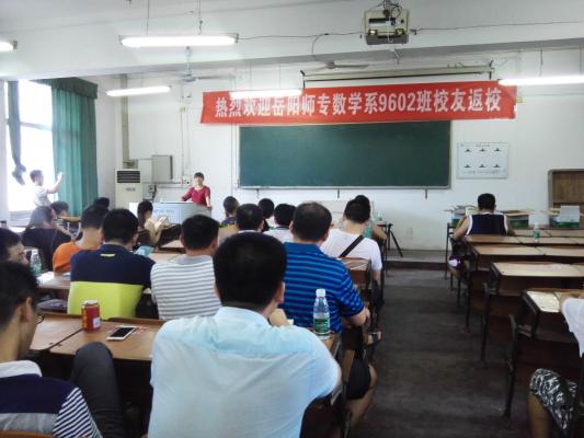 2016年8月8日下午14:30,于1号教学楼1415教室数学学院96级02班校友齐集一堂。原岳阳师专数学系教师毕冬娇参加座谈。