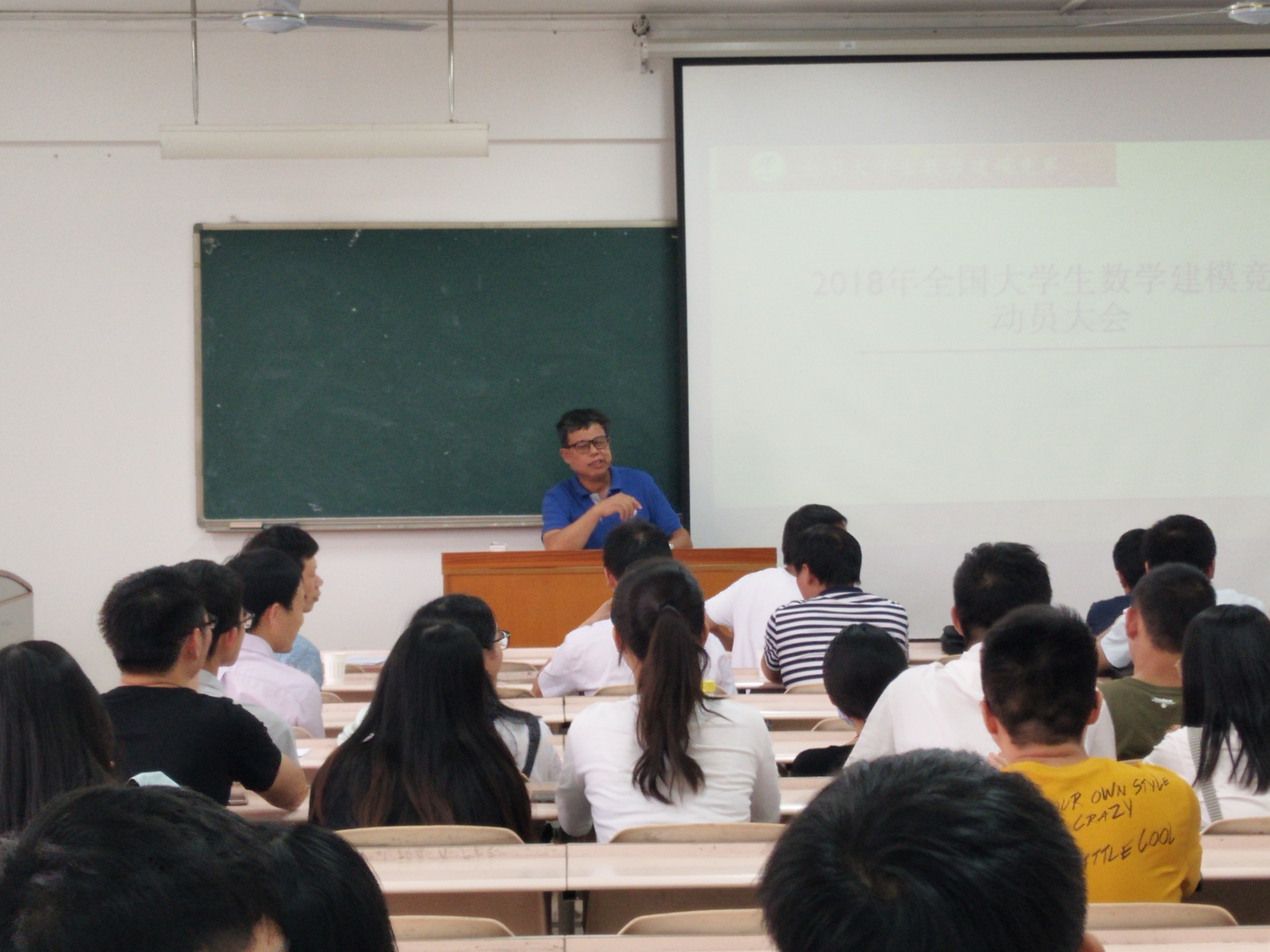 2018年9月11日下午,全国大学生数学建模竞赛动员会在数学学院副院长周立仁老师的主持下顺利召开,参加会议的有数学学院院长孙明保教授和指导数学建模竞赛的培训老师,孙院长在会议上做了重要的讲话,并对本次参加国赛做了动员和鼓励,并预祝本次参加全国大学生数学建模竞赛取得优异的成绩。最后,由何帆老师讲解了本年度参赛安排和提交论文的相关注意事项。