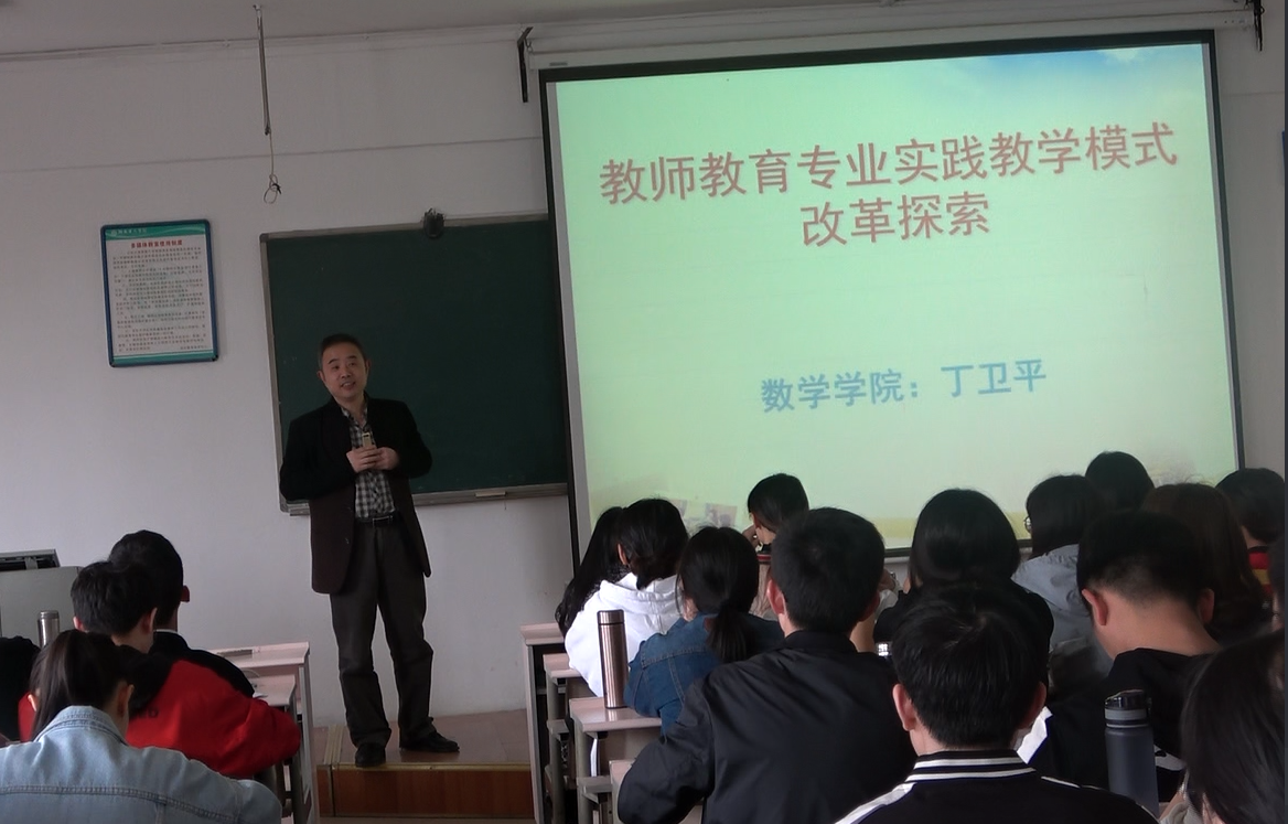 本次活动特邀嘉宾岳阳市教育科学技术研究院资深基础数学教育专家、太阳成集团tyc151cc兼职硕导费建华教授,岳阳市教育科学技术研究院基础数学教育专家、太阳成集团tyc151cc数学学院优秀校友、太阳成集团tyc151cc兼职教师何雄教研员。活动首先由主持人丁卫平介绍数学与应用数学师范专业教育见习与实习实践教学模式改革的初步方案。