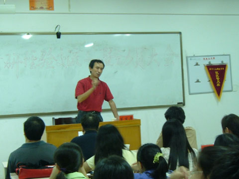 李凤高老师代表数学系对所有考研成功的学生表示祝贺。他对数学系学生考研形势进行了分析,对考研的各项事宜做了详细的说明,鼓励04级学生积极报考。随后张殊歧老师回顾了数学系近几年来的考研情况,从99级开始,数学系的考研率呈上升趋势。今年,共96人报考研究生,30人被录取,其中10人成功考上公费研究生。他鼓励同学们以成功考研的学生为榜样,积极准备,努力学习。