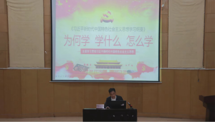 会议第二阶段,江五元为毕业生党员分发党章行囊,希望毕业生党员在新的征程上继续坚定信仰、砥砺奋进。随后江五元以《习近平新时代中国特色社会主义思想学习纲要》为主题为全体党员、入党积极分子讲党课,分别从“为何学”、“学什么”以及“怎么学”三个方面进行授课。江五元重点强调,要想学习好习近平新时代中国特色社会主义思想,需要在多思多想、学深悟透、融会贯通、知行合一、学以致用上下功夫,要做到持之以恒的全面学习。同时江五元对全体党员同志提出殷切希望:在日后的学习或工作岗位上,要铭记入党誓言,自觉担负起光荣的责任和使命,充分发挥党员表率作用,争做排头兵。