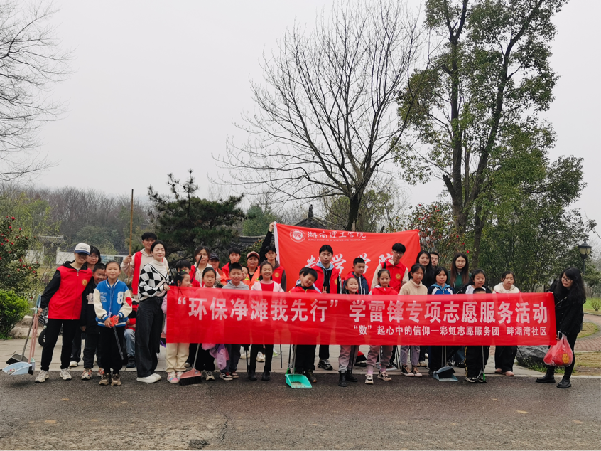 为进一步弘扬雷锋精神,提升青少年的环保意识,为共建绿色家园作出贡献。3月17日,太阳成集团tyc151cc彩虹志愿服务团志愿者携手畔湖湾社区20名儿童在南湖畔开展“环保净滩我先行”学雷锋专项志愿服务活动。