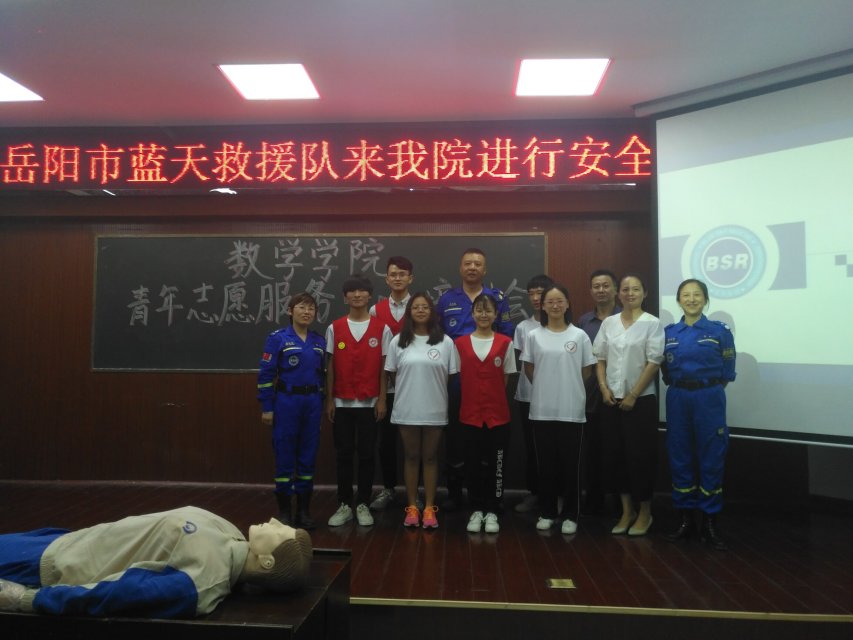 本站讯6月6日晚,数学学院于学术报告厅举办溺水安全讲座及救援培训。本次培训由岳阳市蓝天救援队志愿者陈玲玲、徐爱民、罗向荣主讲。数学学院党总支副书记易政群、团总支书记傅丹出席培训,数学学院团学分会干部、部分学生代表及青年志愿服务中心全体志愿者参加活动。