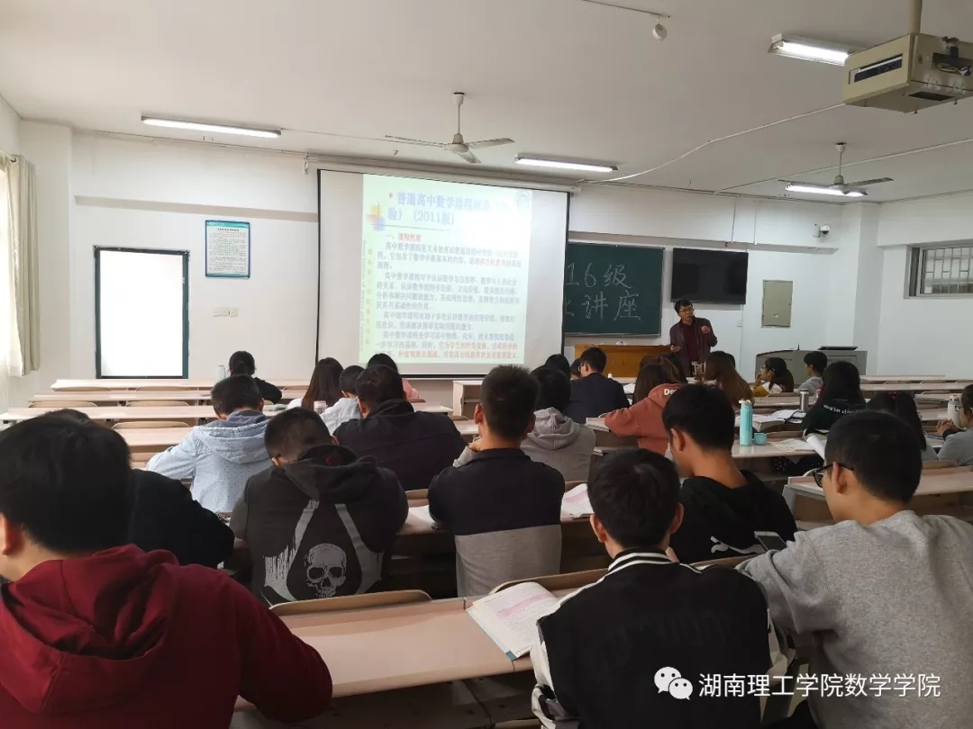 本站讯 10月16日下午,为了加深同学们对数学教育的了解,数学学院于5403教室举行论述题专项讲座。讲座由李松华老师主讲,16级数学与应用数学师范专业全体学生参加。