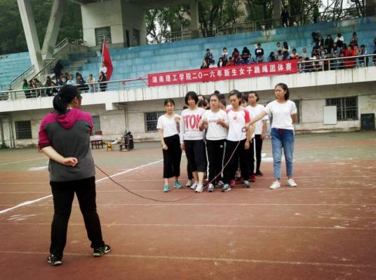 为了丰富校园文化生活,促进校园和谐发展,增强学生体质,10月15日,湖南理工2016新生女子跳绳团体赛于东苑田径场拉开帷幕,我校各学院均派出代表团队参加比赛。数学学院积极响应学校号召,积极备战比赛,跳绳训练开展得如火如荼