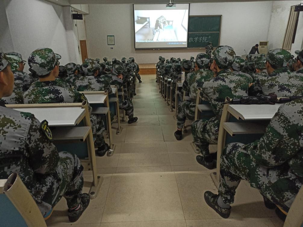 本站讯 10月6日晚,为增强学生国防意识了解军队基本法规,数学学院2020级新生在7T1教室进行军事理论条令学习。