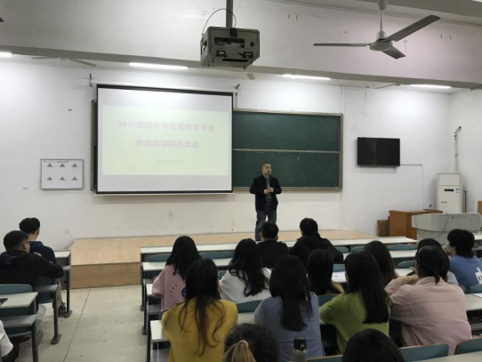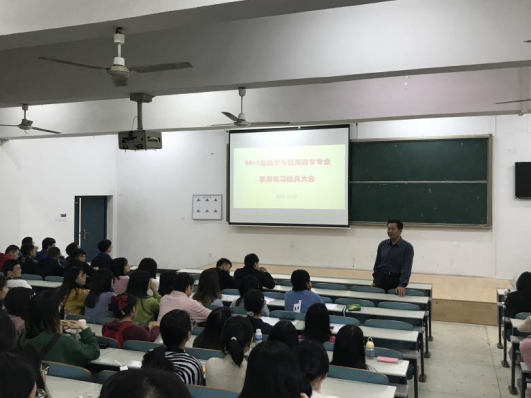 本站讯 10月23日上午10点,数学学院在9T1教室召开了2017级数学与应用数学专业教育实习动员大会。太阳成集团tyc151cc副书记易政群、副院长丁卫平、17级辅导员傅丹出席会议,2017级即将实习的同学参加。
