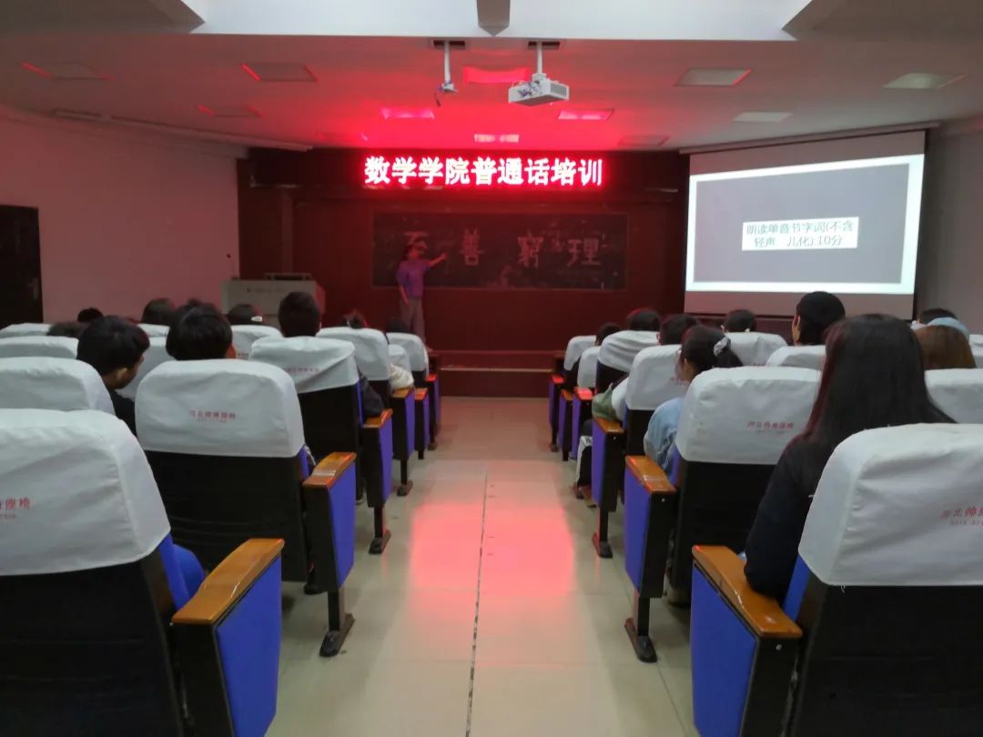 本站讯 4月16日下午,数学学院20级普通话培训在六栋学术报告厅顺利举行。20级辅导员徐笑天、大学生语言艺术团田智慧出席讲座、20级全体学生参加。