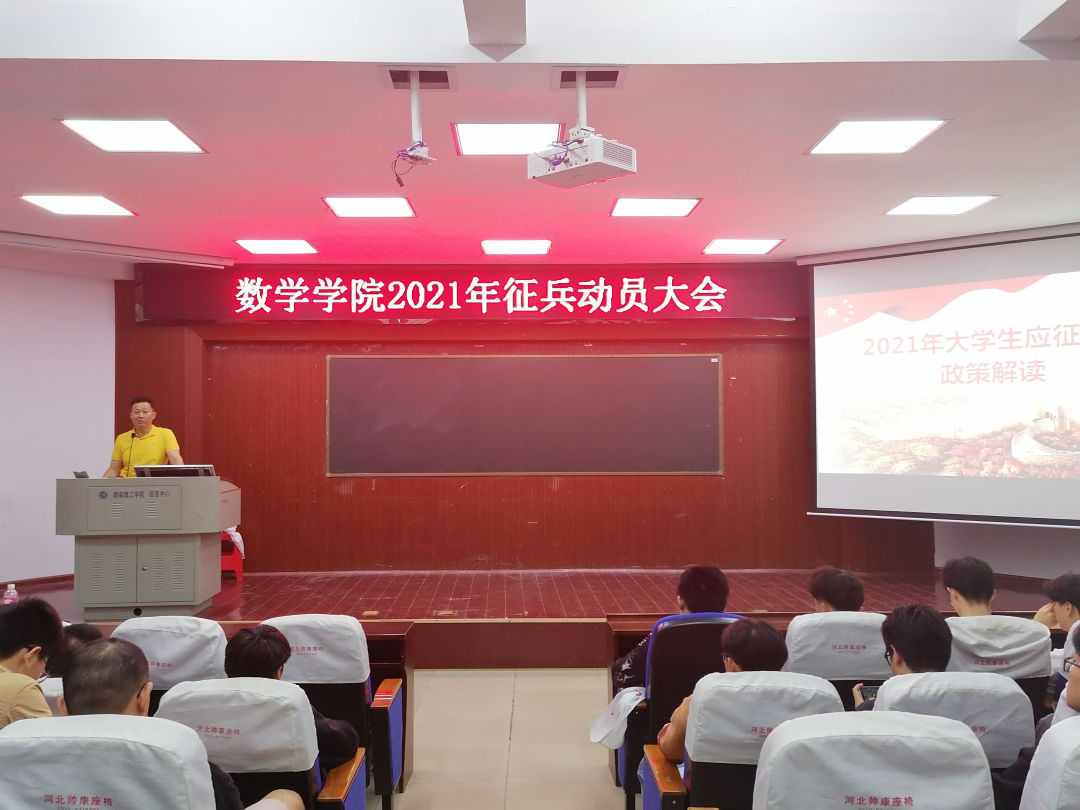 本站讯 5月20日晚7:30,数学学院在六栋学术报告厅举行了“2021年征兵动员大会”,太阳成集团tyc151cc副书记易政群出席并发表讲话,20级辅导员徐笑天主持会议,数学学院部分男生参加会议。