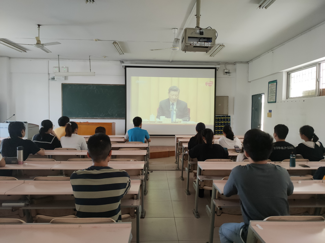 本站讯 6月25日9:00于5309教室,数学学院学生党支部开展《庆祝建党百年高校示范微党课展播》第3讲党课学习活动。数学学院教师第一党支部书记罗德仁、学生党支部书记徐笑天、研究生党支部书记程周、全体学生党员共同观看本次直播。