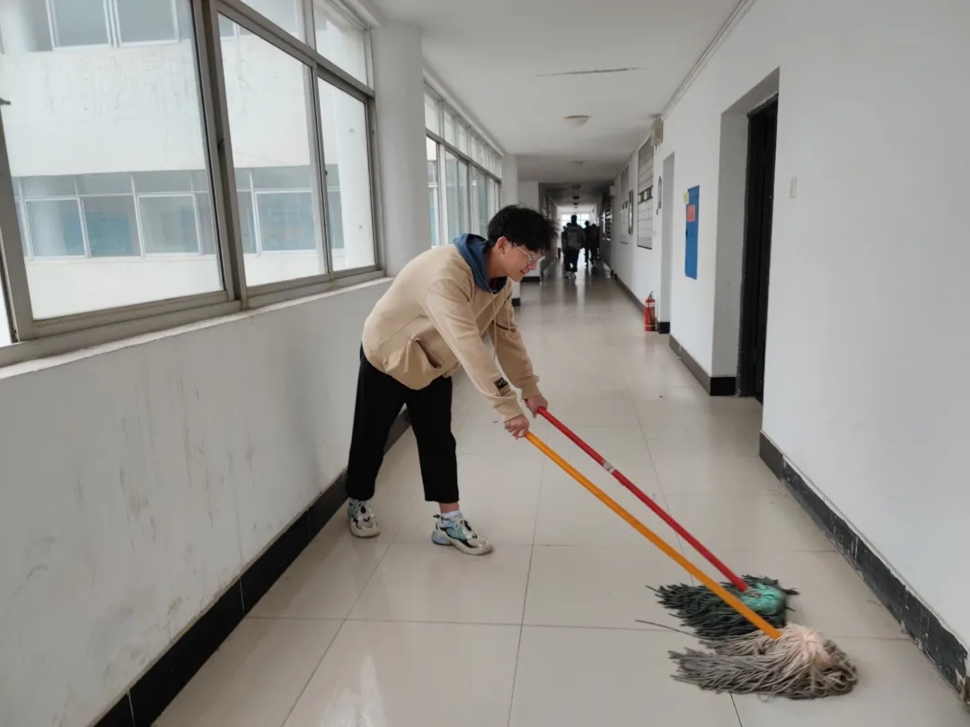 本次劳动教育实践课程的任务为五号教学楼公共区域卫生清扫。清扫过程中,21级五个班根据各自班级人数差异,合理拆分成多个小组,各小组任务分配明确,所有同学有序地对教学楼的各个楼层进行了大扫除。另外,率先完成劳动任务的小组也会分散协助其他未完成任务的小组;同学们以对劳动的热情和对学校的热爱,积极主动承担了劳动任务,彼此帮助,认真细致地清理教学楼的每一个角落;劳动实践后,教学楼焕然一新,学习环境更加整洁、温馨。