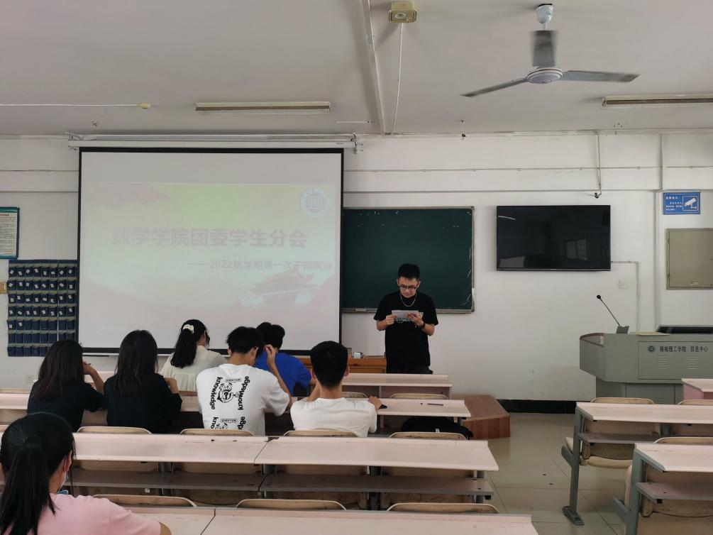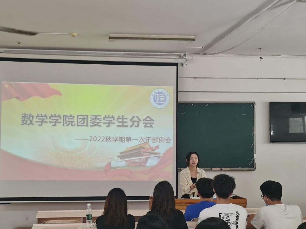 本站讯 为总结团学上年度工作情况,部署下半年工作计划,9月2日午时,数学学院新学期第一次团学例会于5408教室顺利召开。数学学院团委书记赵馨出席,团学分会全体学生干部参与会议。
